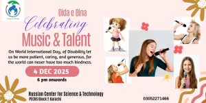 کراچی (۔ ) سمیرا جاوید چیئرپرسن خلق خدا ویلفیئر ایسوسی ایشن ، نے “:دیدہ اینڈ بینا معہ میوزک اینڈ ٹیلنٹ”‘ کے نام سے گونگے، بہرے اور نابینا معزور افراد کے ساتھ “‘ایک شام آپ کے نام” منانے کے عنوان سے “‘ معذورین کے عالمی دن”‘ کے موقع پر بروز جمعرات مورخہ: 04/دسمبر 2025ء شام 6:00 بجے بمقام رشین سینٹر برائے سائنس اینڈ ٹیکنالوجی، پی۔ای۔سی۔ایچ۔ایس، بلاک۔2، کراچی “‘ میں ایک پروقار تقریب کا اہتمام کیا، سمیرا جاوید ایک نرم دِل، اِِحساسات و جذبات رَکھنے کے ساتھ ساتھ اِیسے پُروگرام مرتب کرنے میں اپنا ثانی نہیں رکھتیں، ایسا محسوس ہوتا ہے کہ اُنہوں نے اپنی زندگی کو اِن ہی کاموں کے لیے وَقف کردیا ہے، الٌٰلہ تعالیٰ ان کو ان نیک کاموں کا اجر عطا فرمائے، جس کی وجہ سے وہ ہر طبقے میں جانی پہچانی جاتی ہیں اور اپنا کام انتہائی جاں فشانی سے کرتی ہیں ۔ اپنے ساتھ ساتھ اپنی ٹیم کو بھی متحرک رکھتی ہیں، اِس موقع پر، رشین قونصل جنرل معہ اہلیہ نے شرکت کی، صوبائی وزیر سندھ شمیم صاحبہ، ڈپٹی میئر کراچی، سلمان عبداللہ مراد، ڈائریکٹر، سٹی انسٹیٹیوٹ آف مینجمنٹ، KMC محمد شاہد، ڈپٹی ڈائریکٹر فنانس، ڈپٹی میئر سیکریٹریٹ، KMC، آصف احمد خان، سابق ڈپٹی ڈائریکٹر، (ایڈمن)، ڈپٹی میئر سیکرٹریٹ، KMC اور کالم نگار،کہانی نویس، مصنف، ریحان محمود خان، سابق فوٹو جرنلسٹ، شوکت علی، خلقِ خُدا ویلفیئر ایسوسی ایشن ونگ کی مرد وخواتین سمیت سیاسی و سماجی شخصیات و دیگر مہمانان گرامی نے شرکت کرکے معذوروں کی حوصلہ افزائی کی، تاکہ وہ سماج میں اپنے آپ کو الگ، کمزور اور کمتر نہ سمجھیں، مرد و خواتین معزوروں نے بھی بڑی تعداد میں شرکت کرکے خوشی کا اظہار کیا۔ پروگرام کے آخر میں مہمانوں کو اجرک پیش کی گئیں، بعد ازاں شرکاء سمیت مہمانوں کا گوپ فوٹو سیشن ہوا۔