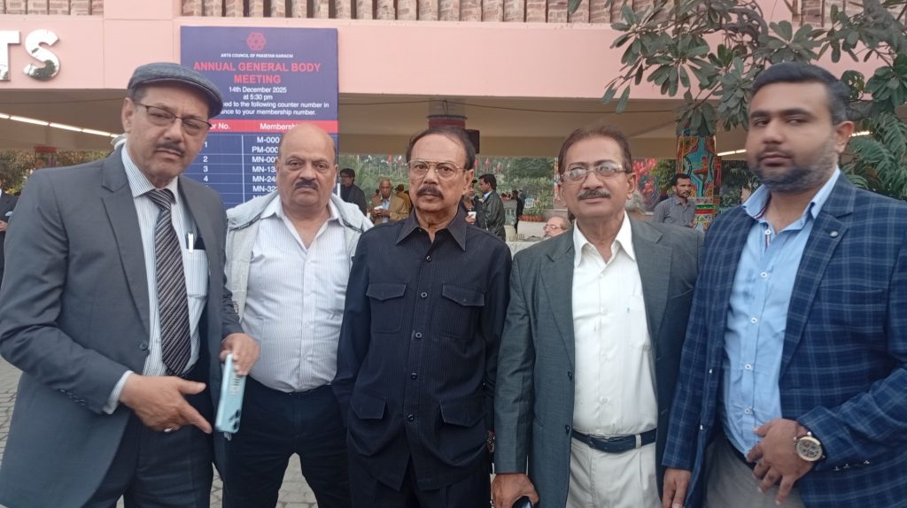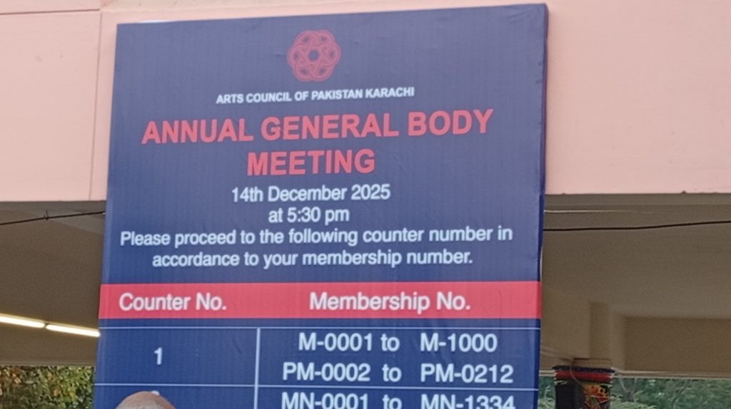 آرٹس کونسل آف پاکستان کراچی میں سالانہ جنرل باڈی اجلاس آج بروز اتوار 14/دسمبر 2025ء کو بہت شوق و ذوق کے ساتھ منعقد کیا جارہا ہے، جہاں اراکین آرٹس کونسل کی چائے، سموسوں اور جلیبی خاطر تواضع کی جارہی ہے، یہ انتالیس (39) دن عالمی تھیٹر فیسٹیول انعقاد کی کامیابی کا جشن بھی منایا جائے گا، جس میں دنیا بھر سے آئے ہوئے فنکاروں نے اپنی پرفارمینس پیش کرکے شائقین سے داد سمیٹی، اجلاس کے بعد دنیائے میوزک کے شہرہ آفاق راحت فتح علی YMC گرائونڈ میں پرفارمینس پیش کریں گے، کثیر تعداد میں ممبران و سماجی، علمی و تعلیمی اور ادبی شخصیات کی شرکت ان کے جوش و خروش کو ظاہر کررہی ہے۔