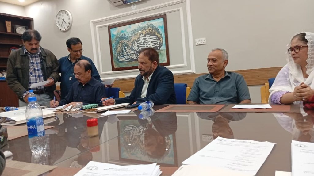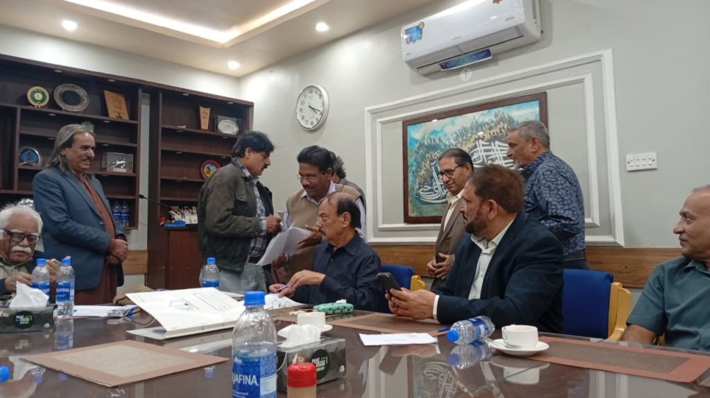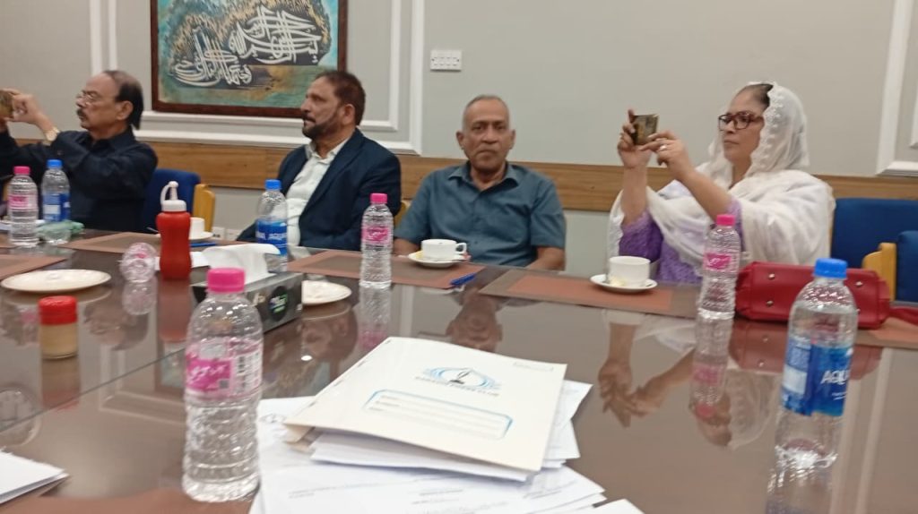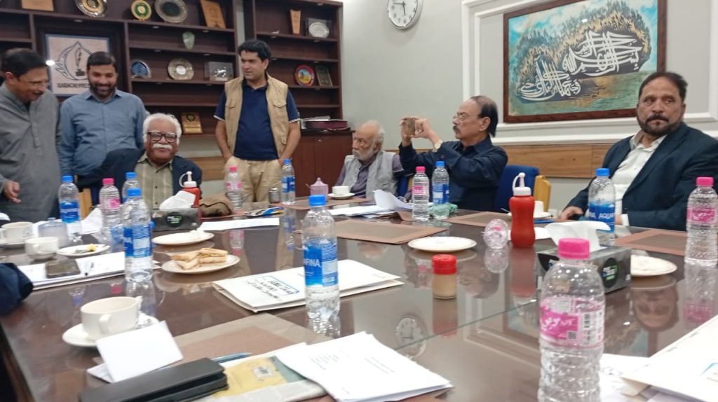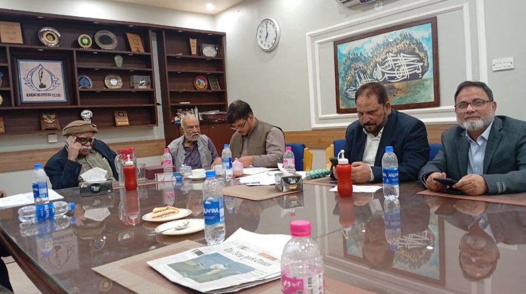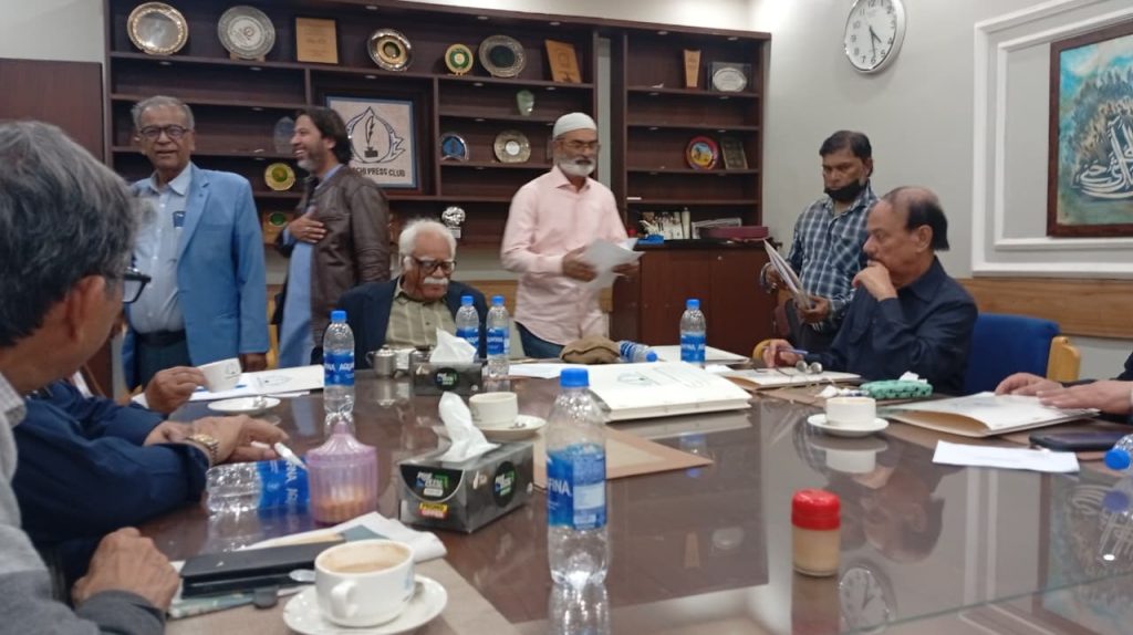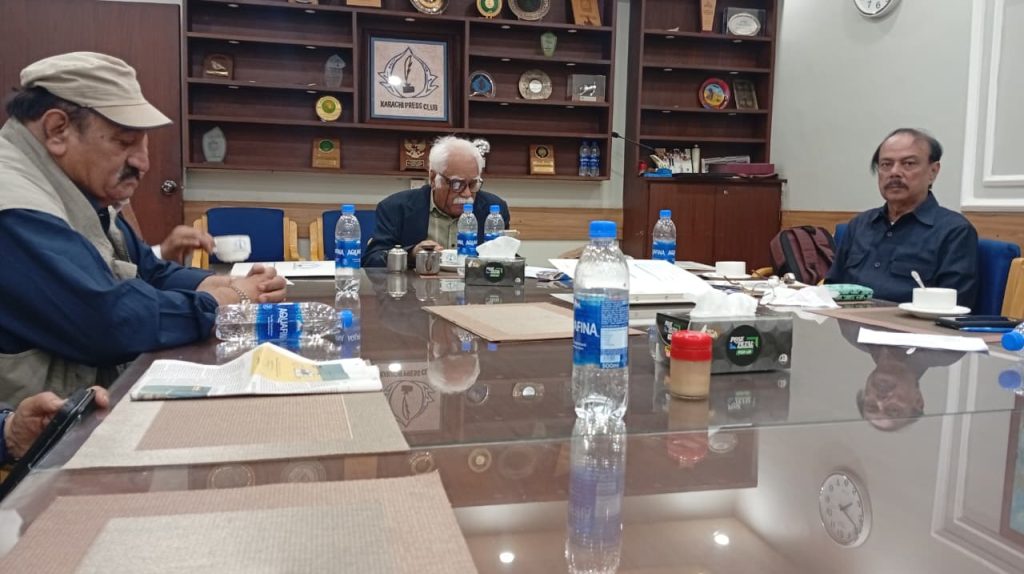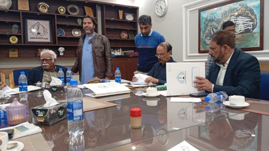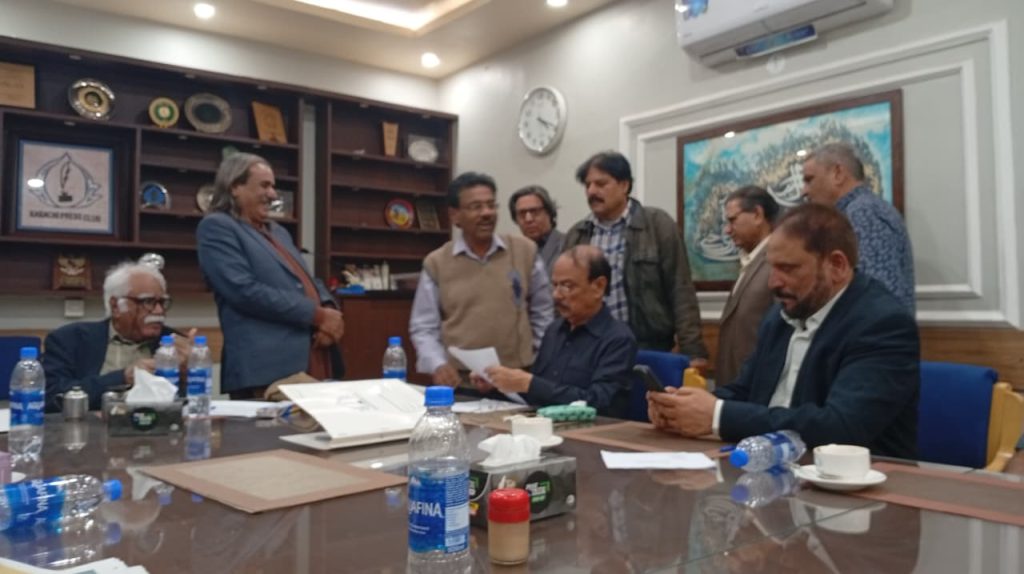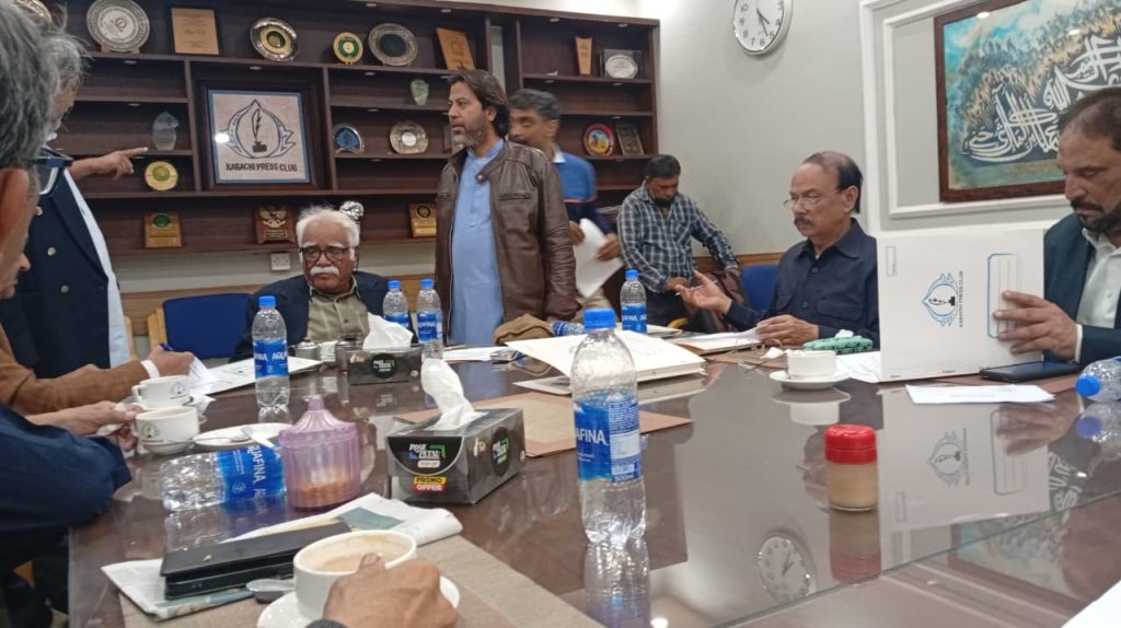 کراچی پریس کلب کے انتخابات چیئرمین الیکشن کمیٹی کراچی پریس کلب ڈاکٹر توصیف احمد خان ،ممبر الیکشن کمیٹی،حسن امام صدیقی، ڈاکٹر سیف اللہ، ستار جاوید، ڈاکٹر سعید عثمانی، سہیل سانگی، فاروق عرشی، اطہر اقبال، ڈاکٹر بَدَر سُومرو، ریحان محمود خان، محترمہ شائستہ بخاری، نُورالھدیٰ، محمد عامر صدیقی، آصف احمد خان اور احمد حسن اور خالد جَمیل، کاغذاتِ نامزدگی وصول کررہے ہیں۔ بعد ازاں 9:00 بجے شَب فہرست آویزاں کردی گئی۔