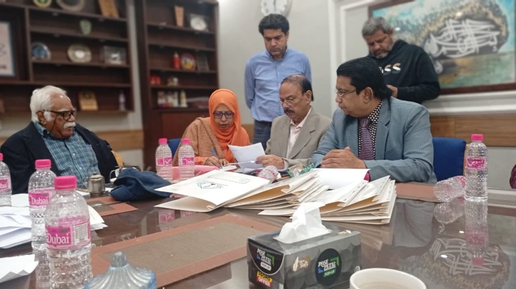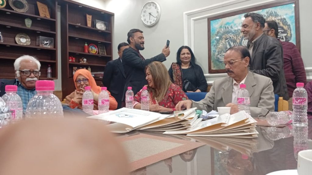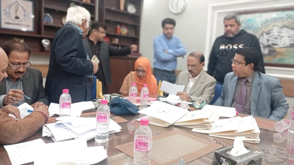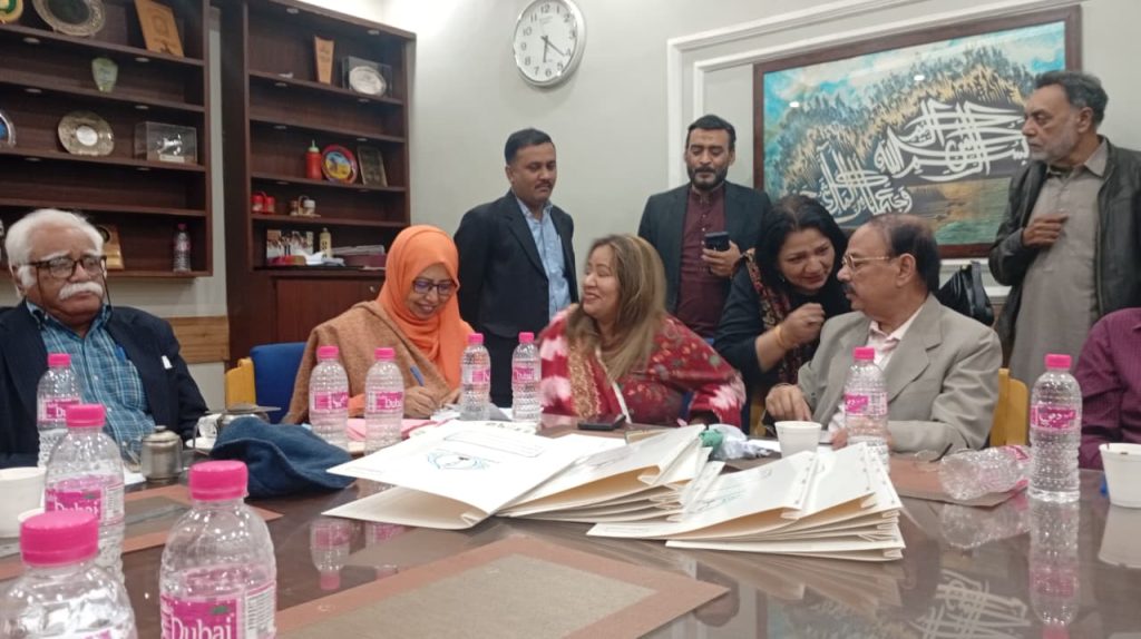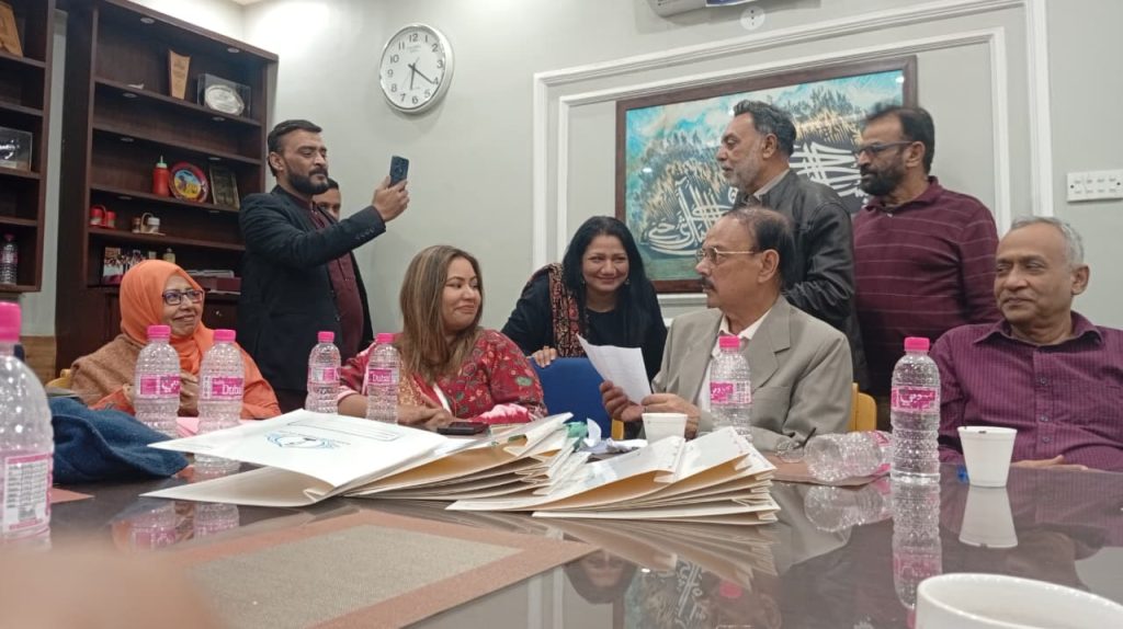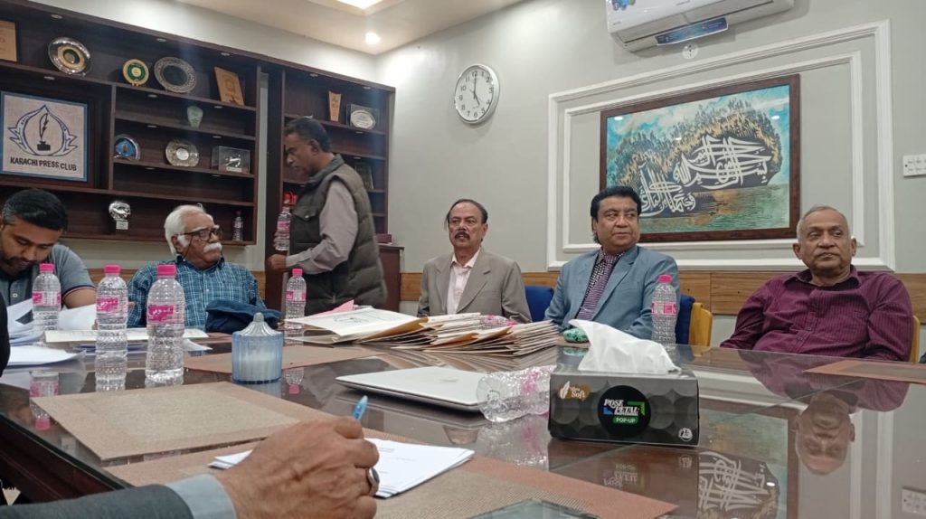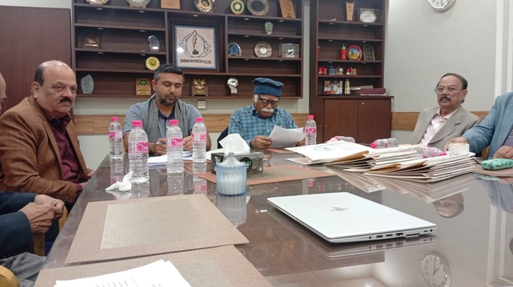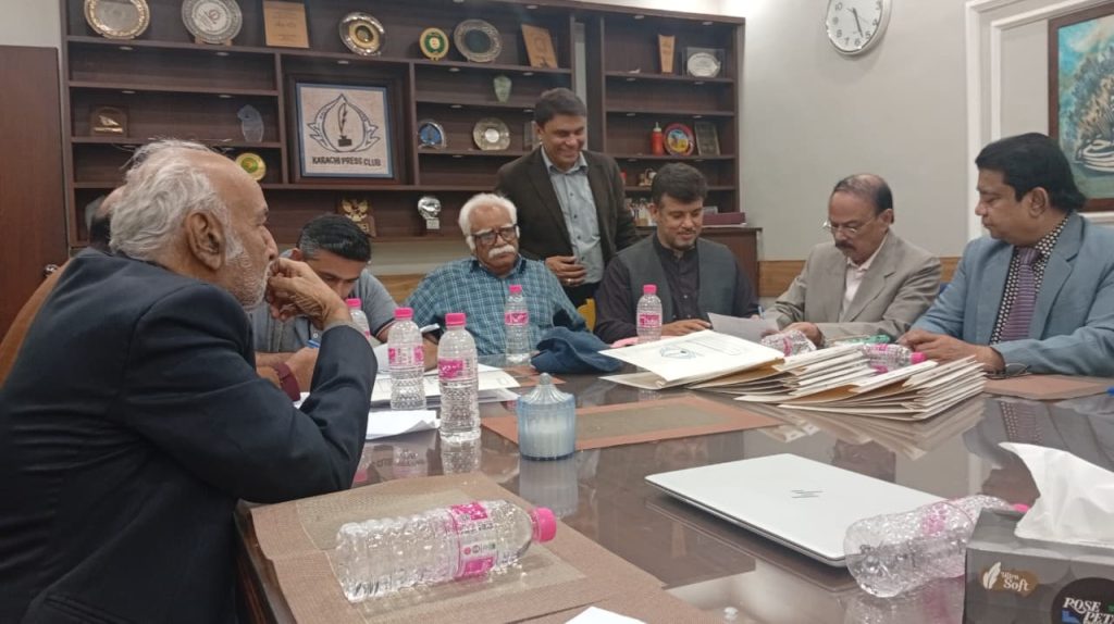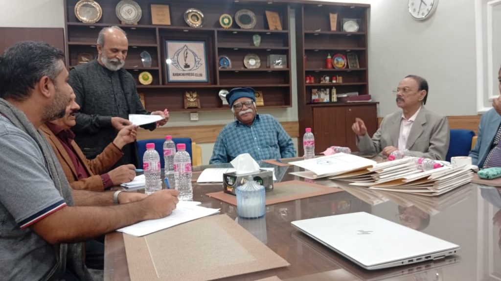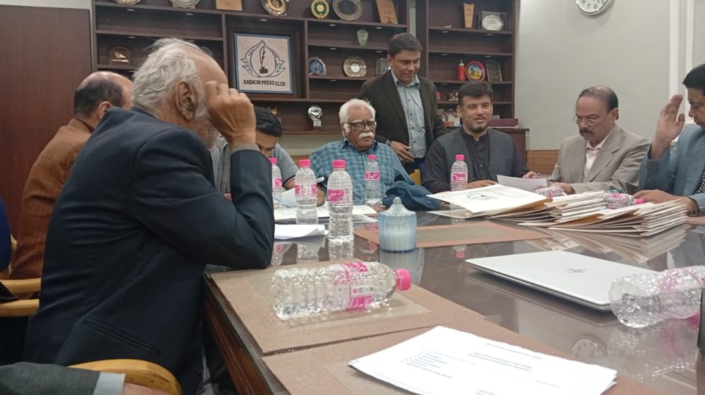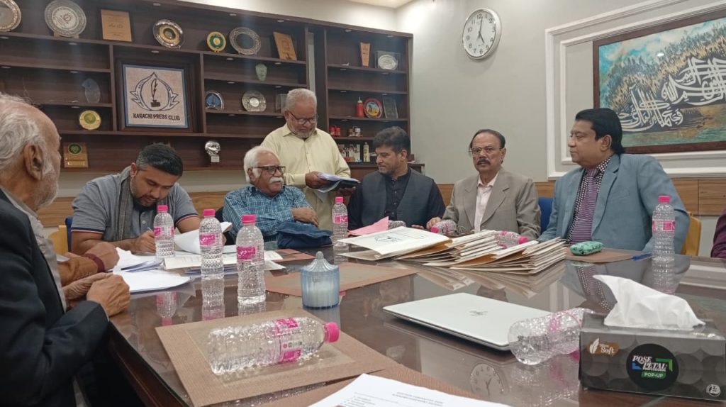کراچی پریس کلب میں ہروز ہفتہ 27/دسمبر 2025ء کو 2026ء کے لیے انتخابات کی تیاری کے آخری مرحلے کے موقع پر آج بروز بدھ مورخہ: 23/دسمبر 2025ء کو کاغذات نامزدگی واپس لینے کی کارروائی کاوقت 4:00 بجے شام سے 7:00 بجے شام تک اپنے اختتام کو پہنچ چکا ہے، فہرست مرتب کی جارہی ہے، اِس موقع پر چیئرمین الیکشن کمیٹی کراچی پریس کلب ڈاکٹر توصیف احمد خان،ممبر الیکشن کمیٹی،حسن امام صدیقی، ڈاکٹر سعید عُثمانی، ڈاکٹر بَدَر سُومرو، ڈاکٹر سیف اللٌٰہ، سہیل سانگی، اطہر اقبال، ستار جاوید، فَاروق عَرشی، سلیم صدیقی، محترمہ رضیہ سلطانہ، محترمہ فروہ حسن، محترمہ فریحہ عاطف، محترمہ عالیہ سعید، عبد العزیز بلوچ، بلال ظفر، نورالھدیٰ، ریحان محمود خان، آصف احمد خان،احمد حسن اور خالد جمیل موجود ہیں۔