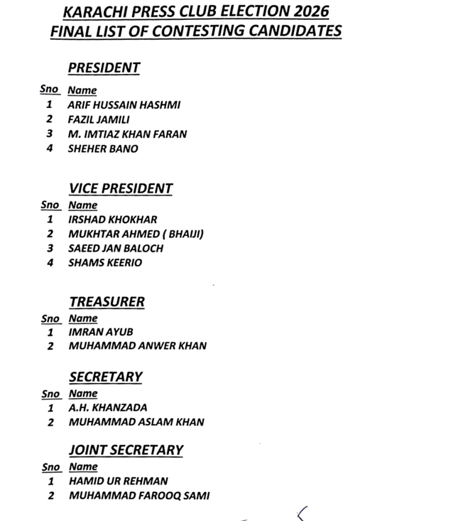 کراچی پریس کلب میں بروز ہفتہ 27/دسمبر 2025ء کو 2026ء کے لیے انتخابات کی تیاری کا آخری مرحلہ ۔ فہرست لگانے کی تیاریاں۔(Withdrawal Nomination Papers)۔۔۔۔۔۔۔۔۔۔۔۔۔۔۔۔۔۔۔۔۔۔۔۔۔۔۔۔۔۔۔۔۔۔۔۔۔۔۔