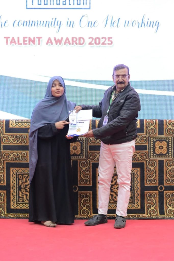 بہار ویلفیئر فائونڈیشن (بی۔ڈبلیو۔ایف) کی جانب سے سالانہ “تقریبِ تقسیم ٹیلنٹ ایوارڈ 2025ء کے موقع پر معروف صحافی کالم نگار، کہانی نویس، کالموں کے مجموعے کی کتاب “دِل کی آواز سنُو” کے مصنف اور معروف سماجی و ادبی شخصیت ریحان محمود خان تعلیم میں بہاری کمیونٹی کی نمایاں کامیابی حاصل کرنے والی طالبات کو شیلڈز، اسناد اور انعامات دے رہے ہیں۔ زیر نظر تصویر میں رکن کراچی پریس کلب، حسن امام صدیقی، معروف صحافی ڈاکٹر شبیر سومرو، لندن سے آئے ہوئے مشہور نیوز کاسٹر اور نعت خواں سید محمد اقبال، نورالھدیٰ، معروف صحافی اِبرار بختیار اور مشہور و معروف شاعر ابنِ عظیم فاطمی نمایاں ہیں۔ ۔