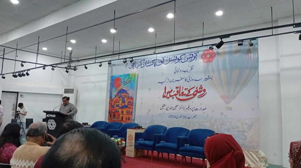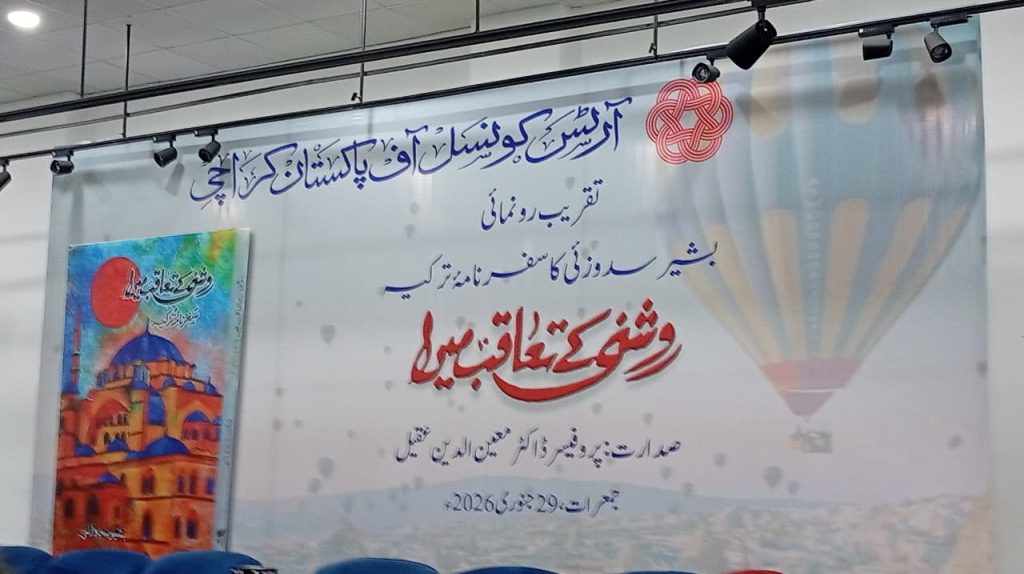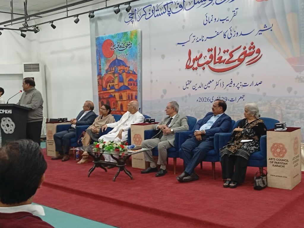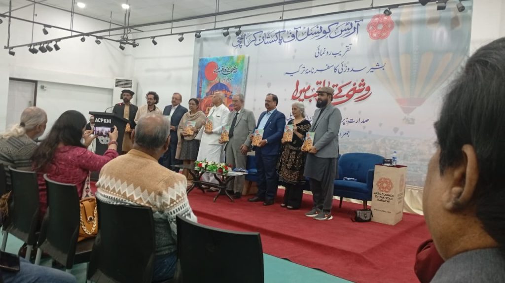 آرٹس کونسل آف پاکستان، کراچی میں آج بروز جمعرات مورخہ: 29/جنوری 2026ء کو بشیر سدوزئی کے ترکیہ کے سفرنامے کی کتاب “روشنی کے تعاقب میں ” کی تقریبِ رونمائی منعقد ہوئی، جس کی صدارت پروفیسر ڈاکٹر معین الدین عقیل نے کی اور مختلف سماجی و ادبی شخصیات نے کتاب پر سیر حاصل خطاب کیا ، اس کتاب شرکاء نے بہت پسند کیا کیونکہ کثیر تعداد میں شرکت کتاب سے دوستی کا ثبوت ہے۔ یہ طالب علموں کی معلومات کا بہت بڑا ذریعہ ہے ۔